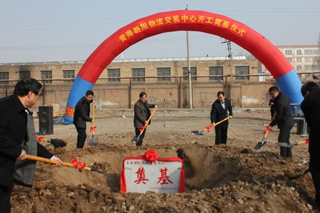 2014年2月25日10時16分,青海朝陽物流交易中心開工奠基儀式在朝陽物流園區(qū)項目建設(shè)現(xiàn)場如期舉行。奠基儀式由青海朝陽物流有限公司工會主席漆海寧主持。青海省物產(chǎn)集團(tuán)總公司總經(jīng)理王玉輝、投資經(jīng)營部部長劉延虎,青海朝陽物流開發(fā)投資有限公司總經(jīng)理王俊杰、副總經(jīng)理喇軍民以及青海朝陽物流有限公司副總經(jīng)理史巖、青島沿海建筑設(shè)計有限公司副總經(jīng)理侯林森、蘭州華鐵工程監(jiān)理咨詢有限公司西寧分公司總理孔祥海、甘肅省建筑基礎(chǔ)工程公司總經(jīng)理任建成參加了奠基儀式。
