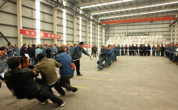 經過賽前的精心準備和熱身訓練,隊員為集體爭取榮譽,賽出了亮點。拔河比賽是考驗一個團隊凝聚力、合作精神以及組織紀律性的最好時機,賽場外不時爆發出陣陣熱烈的加油助威聲,場上隊員鼓足了勁兒,連平時優雅秀麗的女士們此時也變成了大力士。最后,經過激烈的淘汰賽,長春炭素有限公司、電解一車間、電解二車間、鑄造車間隊進入了最后的決賽。在比賽中,不少隊員的手磨破了皮,但卻沒有人在意,正是這頑強拼搏的精神鑄就了我們物產北川工業園區蓬勃向上的生命力。