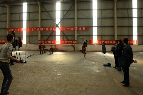 為慶祝五一國際勞動節,豐富物產北川工業園區職工業余文化生活,陶冶職工情操,提高職工整體素質,創建和諧班組,推動企業文化建設,激勵全員職工積極投身生產經營和項目建設,推動公司"兩提一降"工作,從2014年4月21日開始了物產北川工業園區"移動杯"慶五一文體系列比賽活動。