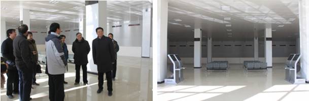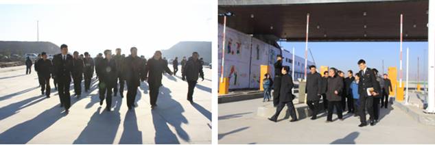 在保稅物流中心卡口上方"青海曹家堡保稅物流中心"以中英文兩種字體呈現(xiàn),海關(guān)標(biāo)識赫然醒目。王黎明副省長一行在實地查看了1#、2#保稅倉庫、卡口、查驗庫、辦事大廳等設(shè)施,并邊走邊聽取物產(chǎn)集團總經(jīng)理王玉輝關(guān)于工程施工進展情況的匯報。