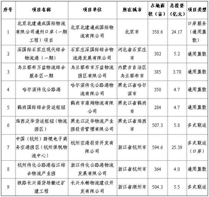 交通運輸部辦公廳關于對2019年擬投資補助的貨運樞紐(物流園區)項目進行公示
