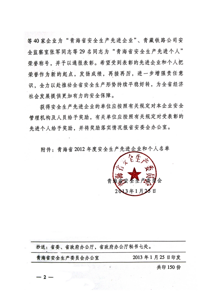 青海物產(chǎn)榮獲“2012年度安全生產(chǎn)先進(jìn)企業(yè)”榮譽(yù)稱號